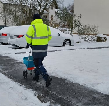 Gerade in Olten kommt es im Winter häufig zu Glätte, sei es durch nächtlichen Frost, Nebel oder Schneematsch. Mit unserem Streudienst sorgen wir dafür, dass rutschige Stellen frühzeitig behandelt werden. Besonders bei Hauseingängen, auf Gehwegen und in Zufahrtsbereichen ist dies entscheidend, um Stürze und Unfälle zu vermeiden.